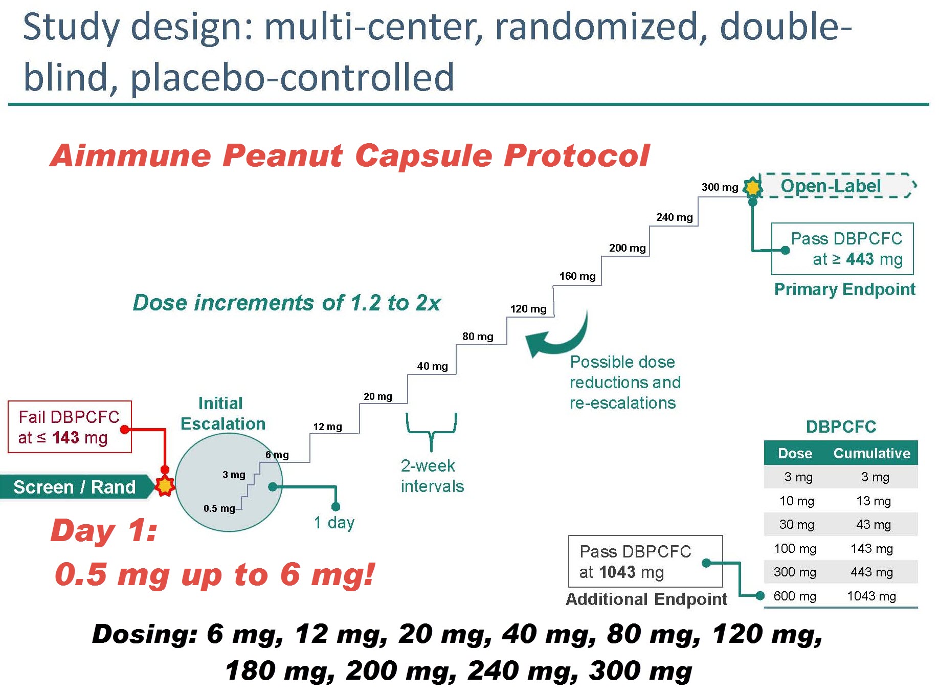 The Aimmune product continues to be higher at the typical ending dose at Day 1 of 6 mg versus 2 mg or 3 mg in Private Practice protocols, and higher and faster for each benchmark along the way. We have many patients in our OIT support groups who cannot reach the benchmarks in the “Customized OIT” protocols and have to go much slower. There will be much more risk to the public and innocent children when you match